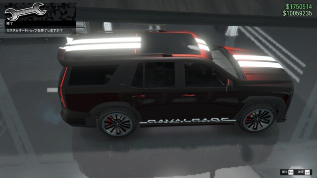 カヴァルケードXLはカスタム項目がとても多いです。ここでは、それぞれのカスタム項目について画像付きで紹介していきます。カラーが反映される箇所がわかりやすいように、以下のようなペイントカラーにしています。