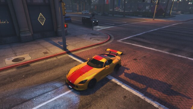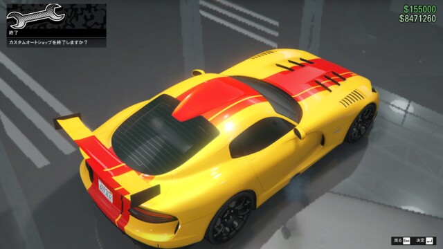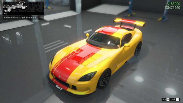 ボディーペイントの「GTSストライプ」を使って見ました。赤いペイントとイエローの組み合わせが、スポーツカーらしくて良い感じですね。