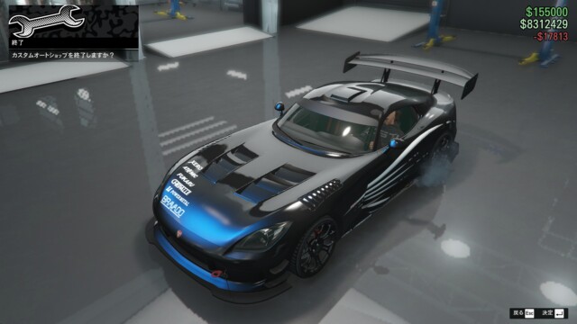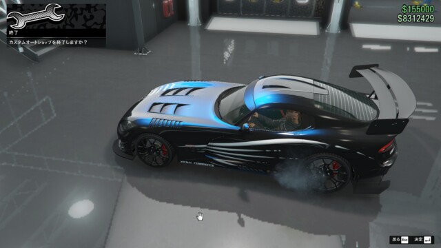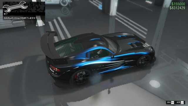 ブラックにウルトラブルーのパールセント、ボディーペイントに「ストップライト・レーサー」を合わせました。このボディーペイントが個人的にはかなりカッコ良くて気に入っています。ボディーペイントの白と黒いボディとのコントラストが良いですね。