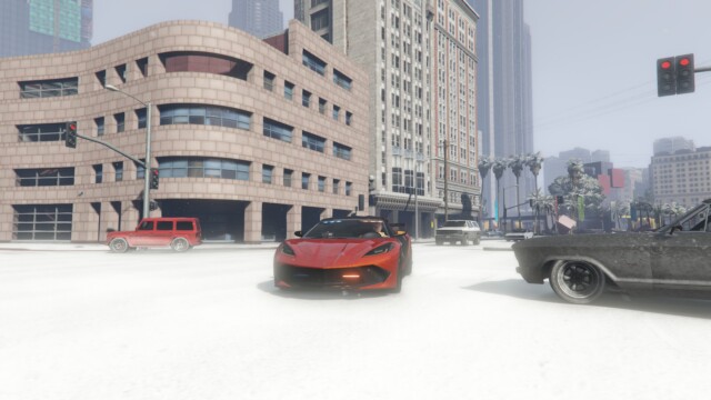 警察車両感を完全に消すことも出来ます。カッコいいスポーツカーらしいカスタムにしてみましたが、かなりカッコイイですね。メインカラーはメタリックのラヴァレッド、サブカラーにマットのブラックを使っています。マットブラックにラヴァレッドのパールセントが効いてるのがめちゃくちゃ良いですね。