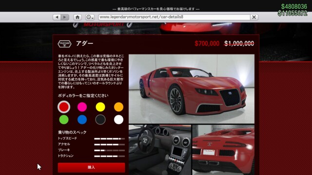 そんな、かつてGTA最速を誇った車両を手元においておきたい、カッコいいスーパーカーが欲しいという方にはおすすめの車両だと思います。